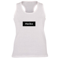 Haibo Graphic on a Feminine Vest in Packed Position (Full Front) in White